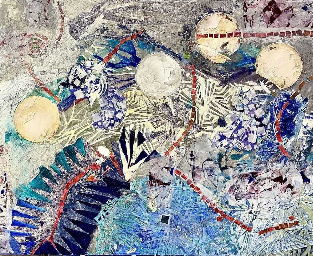 Materials used in original works of art are constructed with light-fast paints and acid-free paper. Some collage elements may not be archival, but are encased with acrylic medium which will provides a barrier to environmental agents that could lessen the life of the art work. Originals are also protected with a final isolation coat of acrylic matt medium and matt soft gel. All art works should be hung in a place where they will not be exposed to direct sunlight, heat, extreme cold, water or chemicals.
