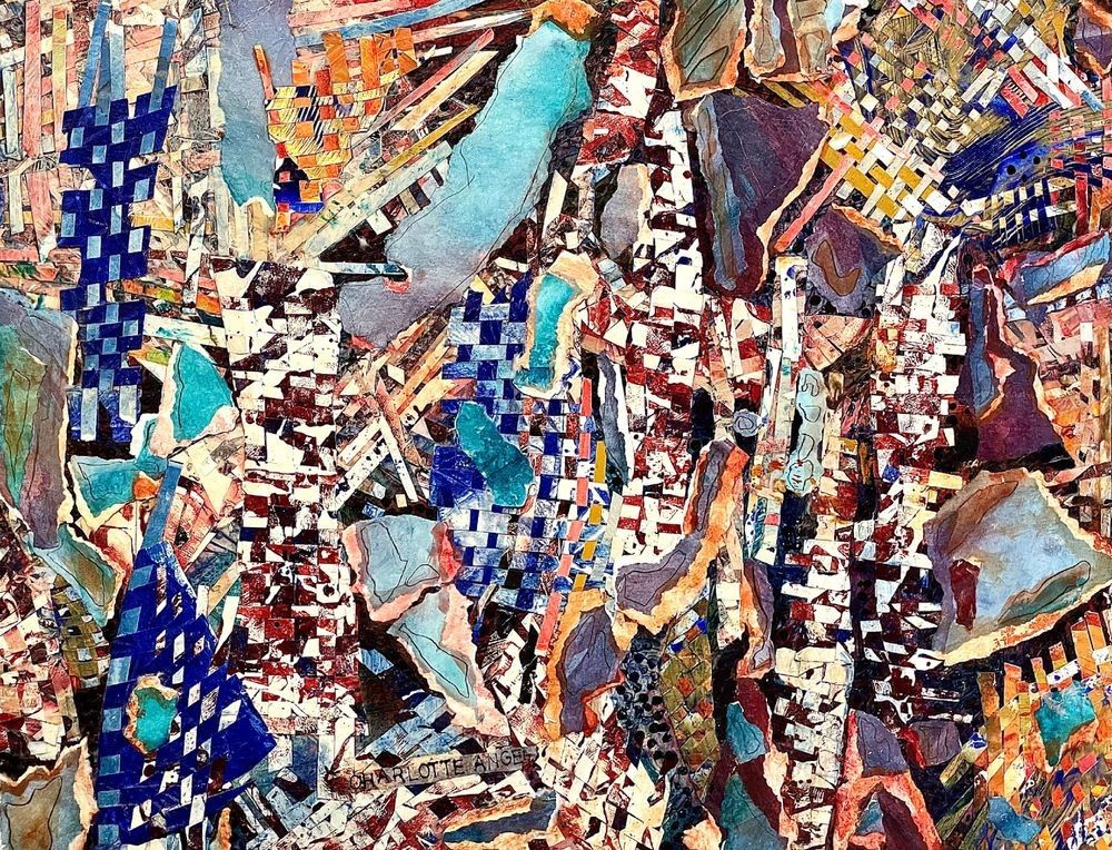 Materials used in original works of art are constructed with light-fast paints and acid-free paper. Some collage elements may not be archival, but are encased with acrylic medium which will provides a barrier to environmental agents that could lessen the life of the art work. Originals are also protected with a final isolation coat of acrylic matt medium and matt soft gel. All art works should be hung in a place where they will not be exposed to direct sunlight, heat, extreme cold, water or chemicals.